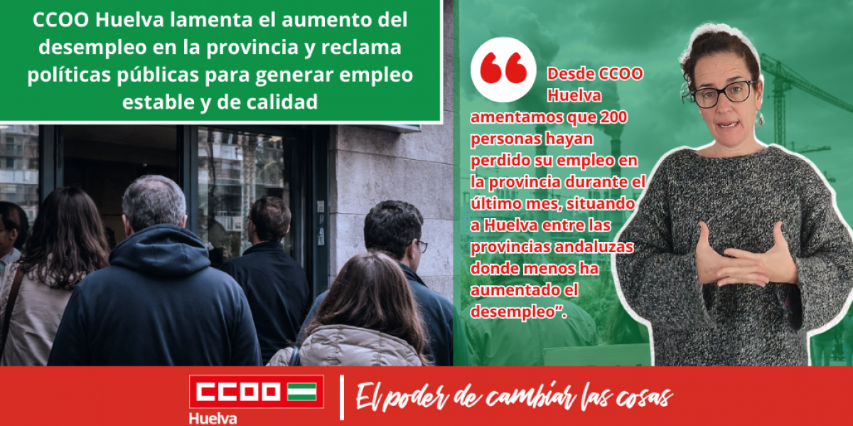 CCOO Huelva lamenta el aumento del desempleo en la provincia y reclama políticas públicas para generar empleo estable y de calidad.