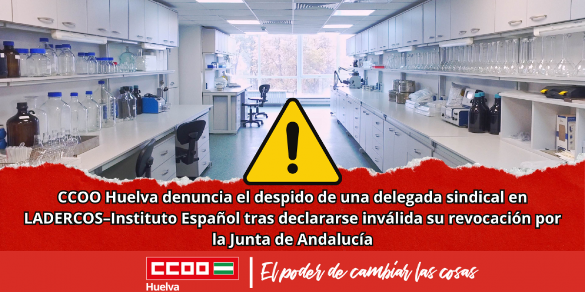 CCOO Huelva denuncia el despido de una delegada sindical en LADERCOS–Instituto Español tras declararse inválida su revocación por la Junta de Andalucía.
